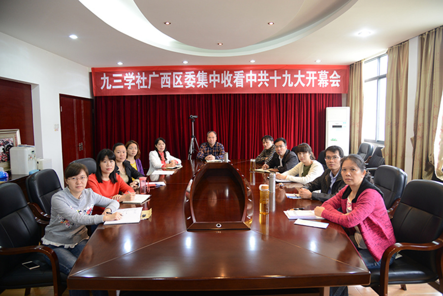 10月18日上午9時,九三學社廣西區委組織機關干部集中收看中國共產黨第十九次全國代表大會開幕會。九三學社廣西區委副主委葛春啟和大家一起聆聽了習近平總書記代表第十八屆中央委員會向大會所作的報告。