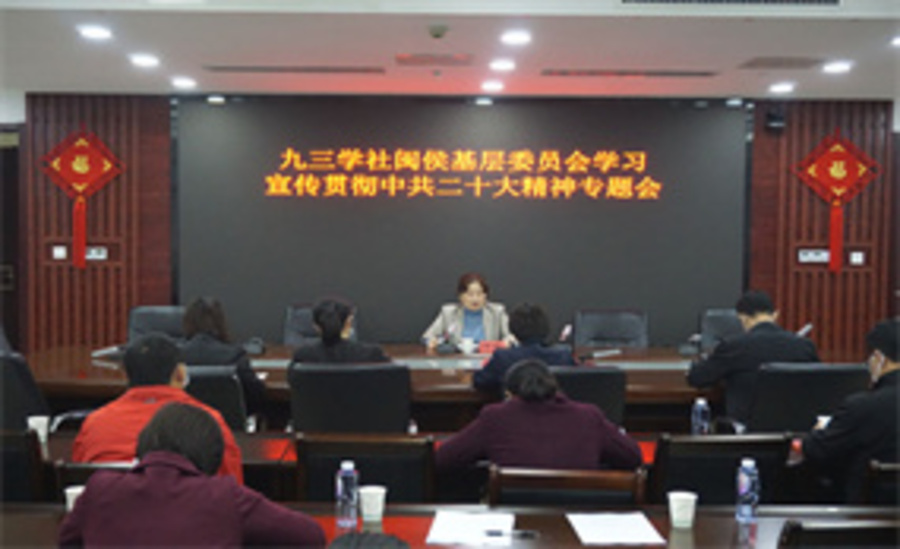 12月1日,九三學(xué)社福建省委副主委、社福州市委主委、福州市醫(yī)保局局長葉玲赴九三學(xué)社閩侯基層委宣講中共二十大精神。社福州市委專職副主委羅楓...
